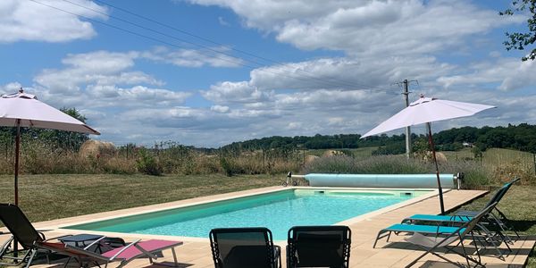 Our large (10m x 5m) swimming pool is shared by our four cottages and has plenty of sun-loungers and parasols for everyone. It is open from late May until September. It isn't heated but warms up quickly in the summer sun.