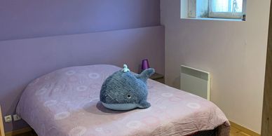 The second bedroom has a comfortable double bed, clothes hanging rail and electric heater.