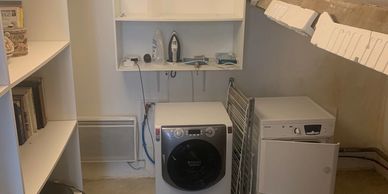Complete with washing machine and tumble drier, plenty of storage and an ironing board and iron.
